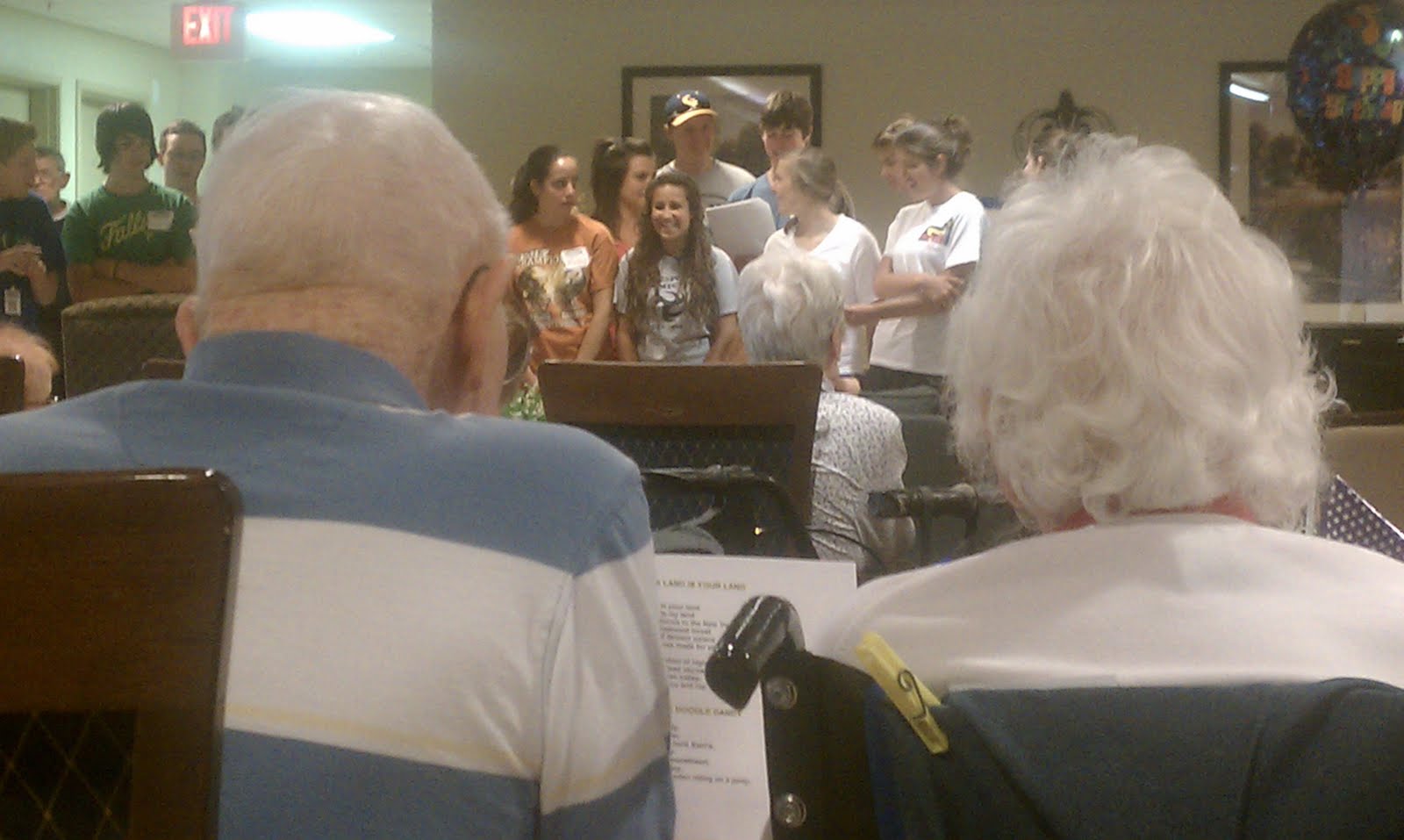 Our mission projects started today - the group I was with spent time at the Prestige Assisted Living Center. We ate lunch, watched a magic show, and sang some songs with the residents. Tonight we went to a park a few blocks down the street and watched the fireworks for a while. I'll try to get some students to post some tomorrow - but for tonight here are some pictures from Zion and the Assisted Living Center.